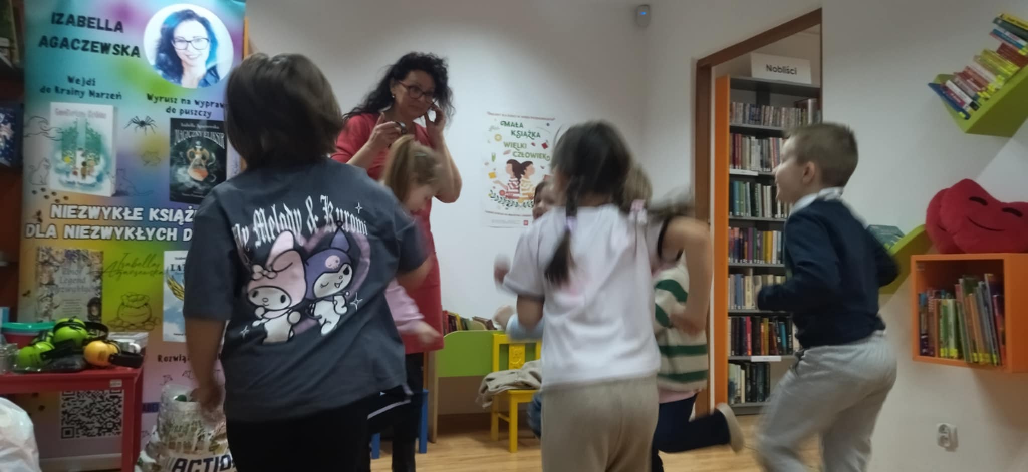Wizyta Jeży w Bibliotece Nr 7 w Łodzi. Spotkanie z autorką książek dla dzieci.
